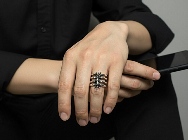 ¢ºÅ©±â : ¹ÝÁö ³Êºñ 2 .4 Cm ¢ºÀçÁú : 925 sterling silver¢º¼³¸í : ôÃßÀÇ °ñ°ÝÀ» ¸ðƼºê·Î ¸¸µç ¹ÝÁö ÀÔ´Ï´Ù. Á¤¸» È·ÁÇÏ°í ¸ÚÁø µðÀÚÀÎ ÀÔ´Ï´Ù.
